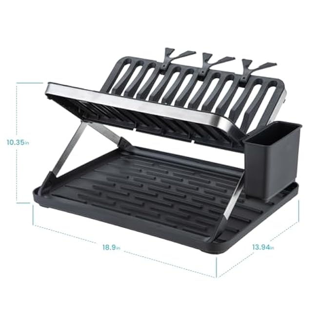 Home Zone Living Foldable Dish Drying Rack with Removable Utensil Caddy and Drip Tray