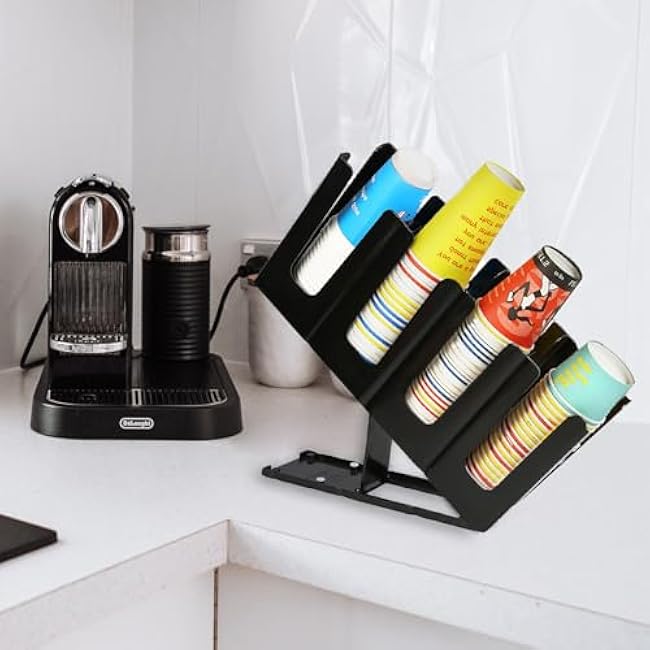 2 Pack Disposable Paper Cup Dispenser Coffee Cup and Lid Holder Storage Organizer Black