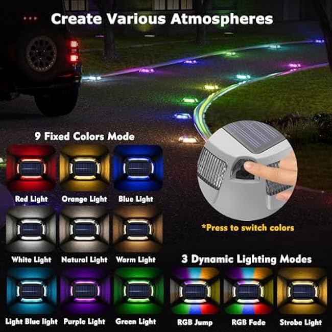 ![8Pack Aluminum Alloy Solar Driveway Lights, IP68 Solar Deck Light Marine Dock Lights Outdoor Waterproof, Multi-Color LED Driveway Markers for Walkway, Path Decor [12Modes - Strobe/RGB/Fix-Color]](https://m.media-amazon.com/images/I/51v5U9rREeL._UY650_.jpg)
