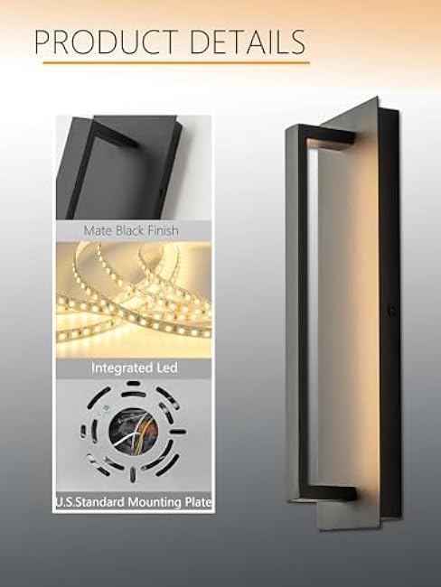 17.6” Black Outdoor Wall Lantern Modern Wall Sconce Light Fixture