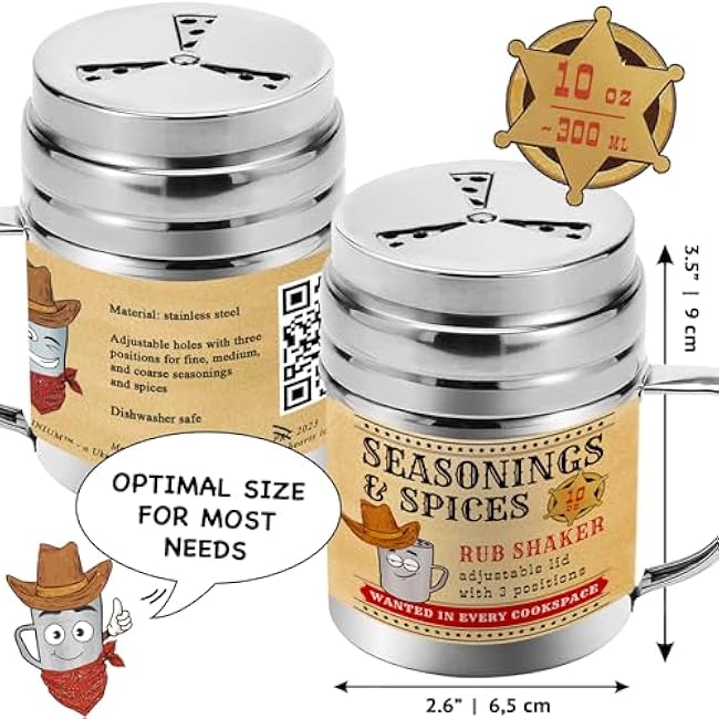 Affordable [1-Pcs] 10 oz Metal BBQ Dry Rub Shaker with Adjustable Fan-Style Lid and Handle + [2-Pcs] 3 oz Glass Spice Seasonings Shaker with Adjustable Lid Bundle High Quaity