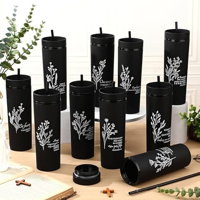 Affordable 10 Pcs Christian Tumbler Bible Verse Skinny Cups 16 oz | for Men Women | Plastic Religious Cups with Lids | Sunday School | Back to School Gifts | for Students Teacher | Boho Spanish just for you