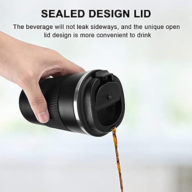 12oz Travel Mug for Car with Leakproof Lid, Coffee Cup Insulated Double Walled Vacuum Stainless Steel Travel Tumbler for Keep Hot & Ice Coffee Tea Beer (Black)