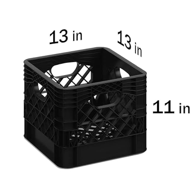 save up to 70% 13 in. x 13 in. x 11 in. Heavy-Duty Black 16 Qt Milk Crate | 4 Pack | Stackable Storage Container with Handles online store