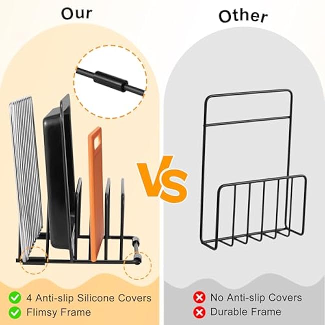 Be the first to review “2 Pack Cutting Board Organizer, 5 Slot Cutting Board Holder Rack with 4 Anti Slip Feet, Kitchen Cabinet Organizer for Bakeware, Cookie Pan Sheets, Black (1.1 and 0.6 Inch Wide)” Cancel reply
