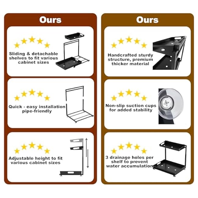 Classic 2 Pack Under Sink Organizer, Handcrafted 2 Tier Bathroom Organizers And Storage Under Sink, Adjustable Bathroom Vanity Organizer,Pull Out Kitchen Sink Organizer, Heavy Duty Cabinet Organizer Cupboard US Outlet