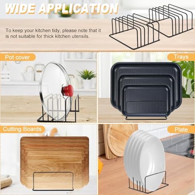 2Pack Cutting Board Organizer, Divided Holder with 5 Slots for Skillets Baking Tray and Chopping Board Rack, Kitchen Cabinet Countertop Bakeware Organizer(Black)