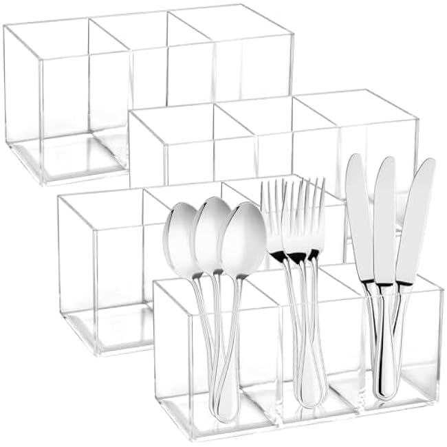 4Pack Acrylic Cutlery Storage Organizer, Transparent Plastic Silverware Utensil Holder Cutlery Spoon and Fork Holder Caddy for Party Kitchen Countertop Organization Knife Tableware