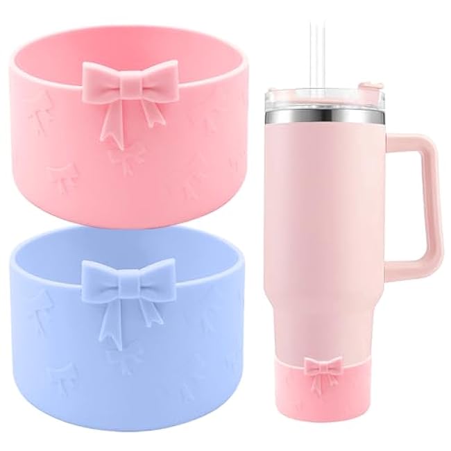 Bows Silicone Water Bottle Boot, Stanley Cup Accessories Anti-Slip Protective Sleeve for Water Bottle, Protector Sleeve Cover Boots for Stanley 40 30 oz with Handle