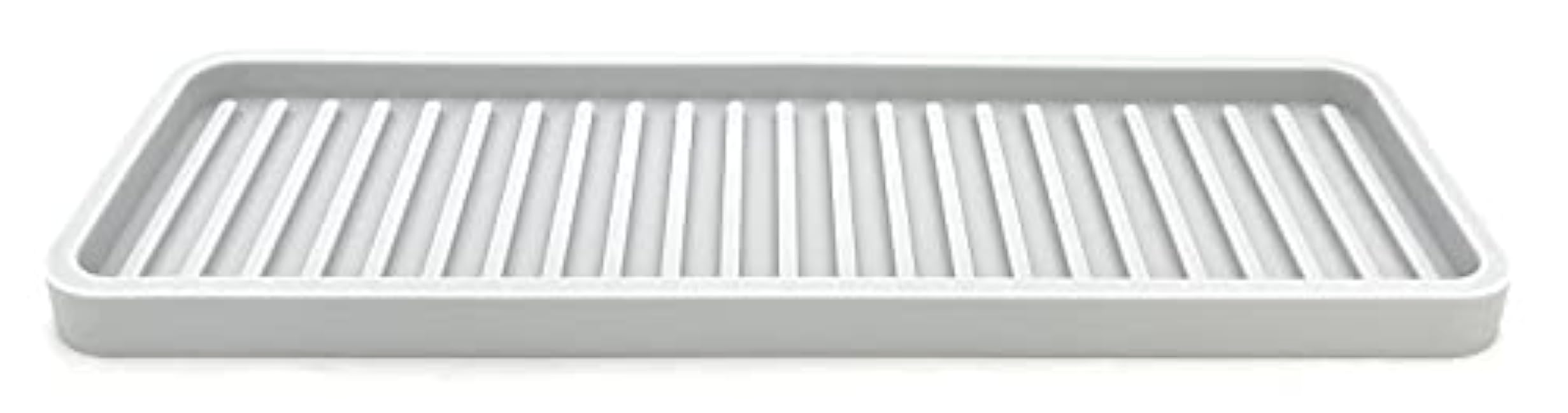 Happitasa Silicone Kitchen Sink Organizer Tray, Sponge Holder and Countertop Protector | Bathroom and Kitchen Soap Dish and Dispenser Tray (Light Grey, 12×4)