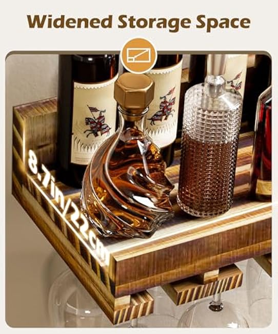 Exclusive Homde Wall Mounted Wine Rack Set, 2 Pack Pine Wood Wine Racks with Glass Holder, Rustic Farmhouse Floating Bar Shelves for Liquor Bottles & Stemware for Home Bar/Kitchen/Living Room Decor US Outlet