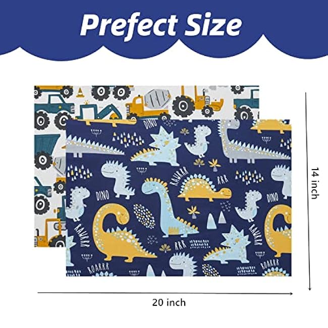 Kid Toddler Pillowcase,2 Packs 100% Cotton Pillow Cover for Kids Bedding,14×20 Pillowslip Case Fits Pillows Sized 13×18 or 14×19,Envelope Closure Dinosaurs Trucks Travel Pillow Pillowcase