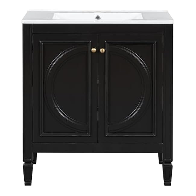 reasonable price Maximize Bathroom Storage with Vintage 30 Vanity Set, Includes Sink and Adjustable Shelves, Black New Style