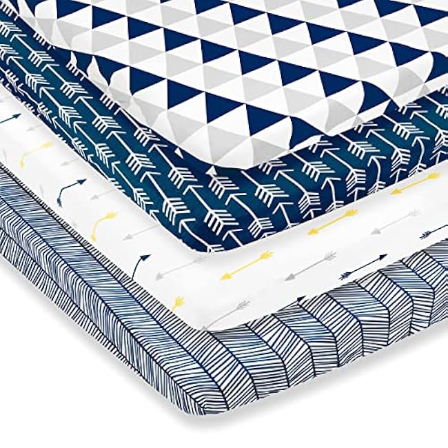 Pack n Play Sheets ¨C Pack and Play Sheets 4 Pack ¨C 100% Super Soft Jersey Knit Cotton Playard Mattress Sheets ¨C Portable Playpen Sheet ¨C Fitted Play Yard Mini Crib Sheets for Boy & Girl (24 x 38 x 5)