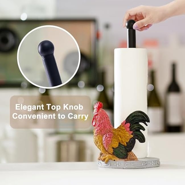 Gorgeous Rooster Kitchen Paper Towel Holder – Kitchen Decor Accessories for Home – Resin Farmhouse Towel Stand for Countertops – Gifts for Rooster Lovers Zero Profit