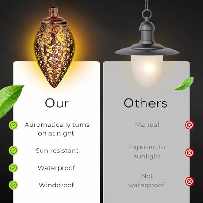 Solis Plus Outdoor Hanging Light -with Shepherd’s Hook – Solar Lighting for Garden ÿ with 8mm LED D¹Ècor Elegant Olive-Shaped Lights Renewable Energy Source