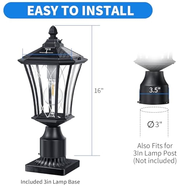 YSN 16 Solar Post Lights Outdoor, Dusk to Dawn Outdoor Post Lights with Pier Mount Base, Black Solar Lamp Posts Light Fixture, Waterproof Light Posts for Outside Yard Garden Patio, 1 Pack